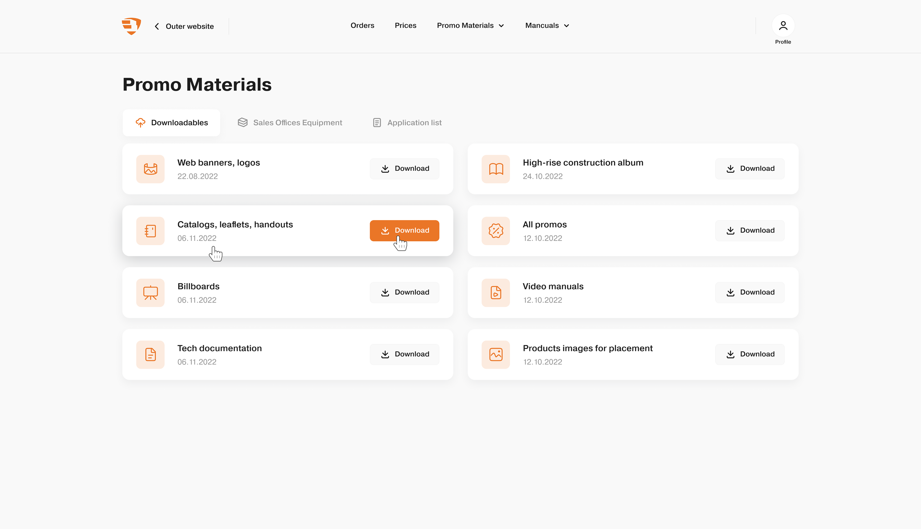 A área de usuário inclui pedidos de materiais e acompanhamento do status. Facilitamos o manuseio de pedidos para os distribuidores ao simplificar os estados dos pedidos e adicionar um histórico de comunicação com os gestores, entre outros.